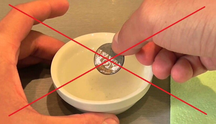 Безусловно, раритет, обнаруженный собственными силами при раскопках, нуждается в качественной обработке, поскольку порой за окисью и грязью даже надписей на аверсе и реверсе не разглядеть. Но, прямо скажем, интернет пестрит от множества советов по чистке монет, среди которых немало абсурдных, а иногда и откровенно небезопасных для металла. Встречаются варианты чистки монет уксусом, лимонной кислотой, пастой ГОИ и, чего уж там, даже кефиром.