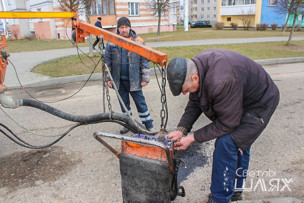 В этом году в начале апреля уже подсохло, и работники РУП «ЖКХ» приступили к ямочному ремонту улиц. Как отметил мастер Леонид Шлюбский, сделать это необходимо за месяц. Будут отремонтированы не только центральные улицы Советская, Ленина,