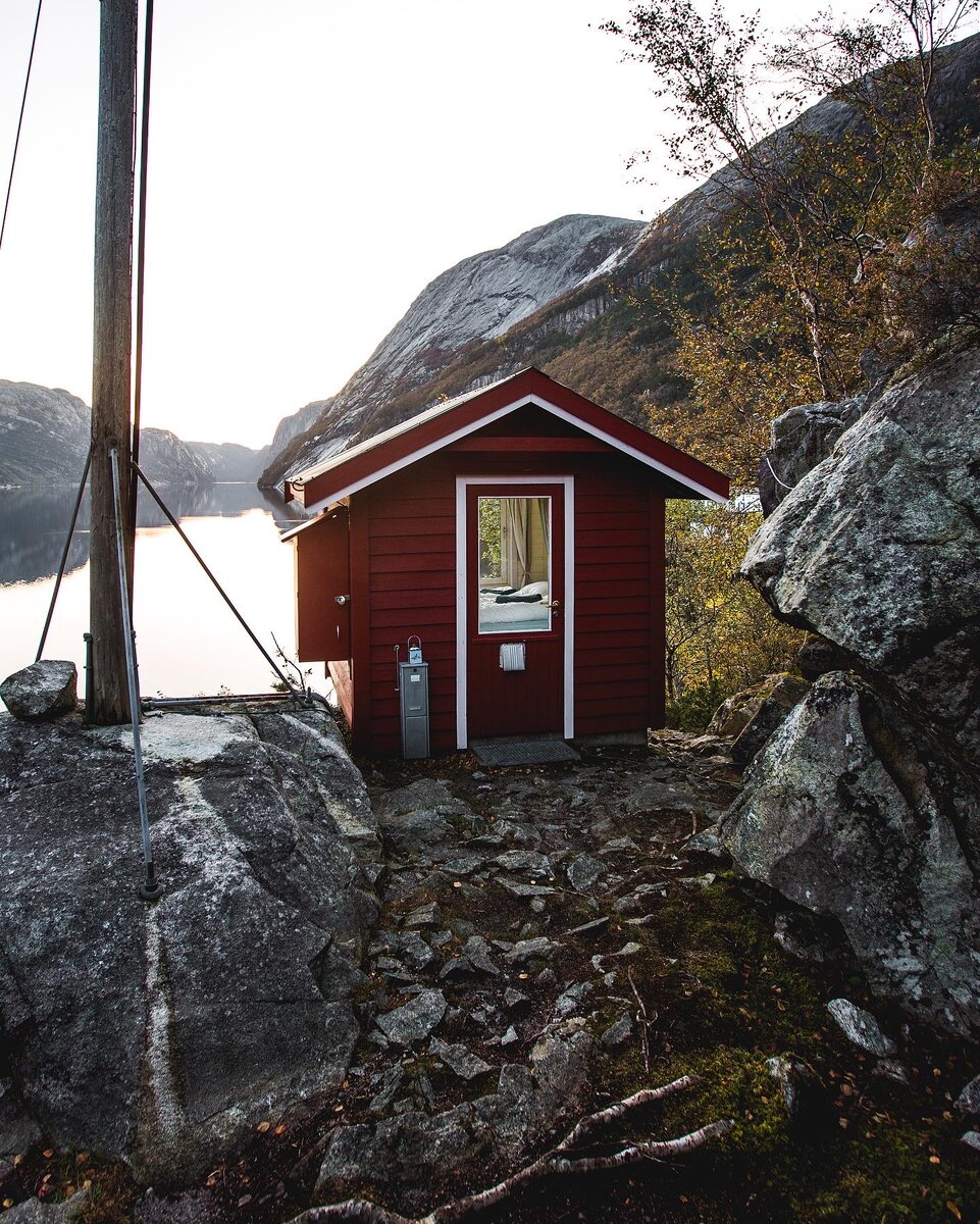 "Radioshed", хоть и самый маленький номер, но одновременно и самый уникальный. Он состоит из одной кровати, большого окна с видом на фьорд Люсе-фьорд, нескольких книг и игр, чайника и обогревателя. Представить более романтичное место просто невозможно :)