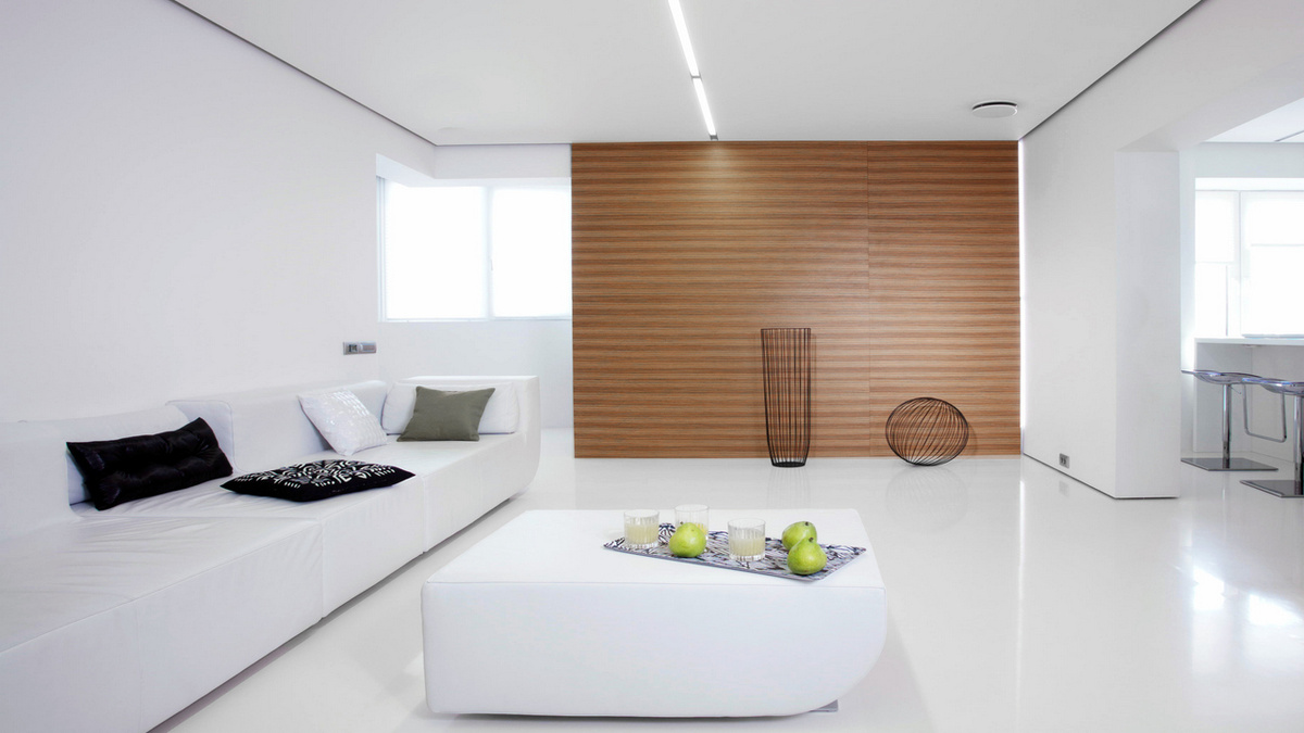 Ничего лишнего, в избытке только пространство – вот девиз тех, кто делает подобный выбор. Минимум цвета и максимум света – второе правило этого стиля. В отделке стен предпочтительна однотонная штукатурка, которую порой заменяют гладкие обои, потолок может быть многоуровневым, но геометрически строгим, как, впрочем, и все интерьерные формы.