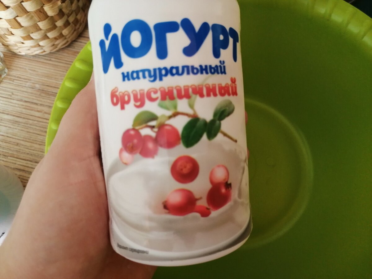 1. В чашу влить 200 мл йогурта. Я взяла Брусничный.