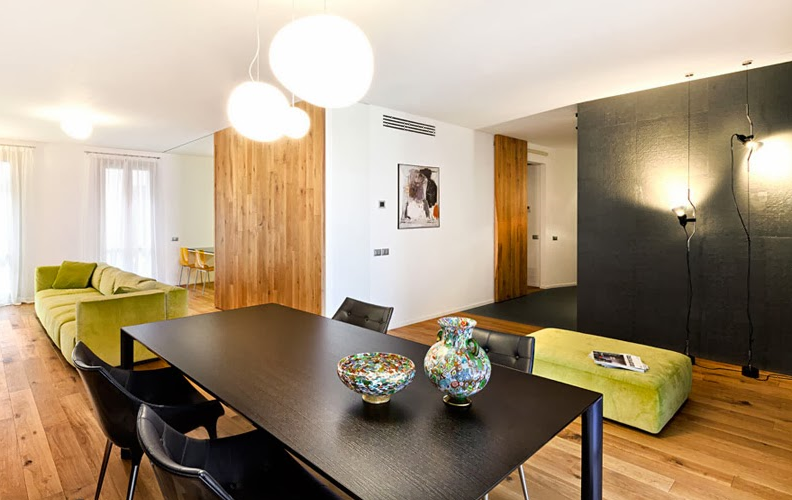 Дизайнер предложил сыграть на контрасте, и идея нам сразу понравилась. Темный акцент так грамотно вписан в интерьер, что совсем не перегружает пространство гостиной, скорее, добавляет глубины и уводит входную зону «в тень», делая ее менее заметной.