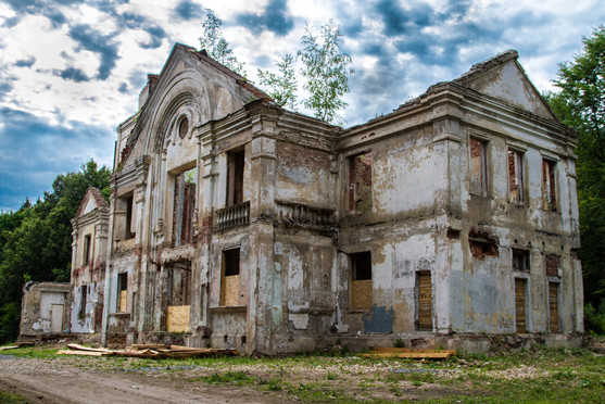 Пока мы гуляли на территории, мы зашли внутрь разрушенного храма, оказывается, там в советское время была столовая с кухней, об этом свидетельствуют остатки плитки на стенах. Так же мы увидели железную балку немецкого завода «Крупп» , видимо, оставшуюся после ВОВ, вечная сталь...