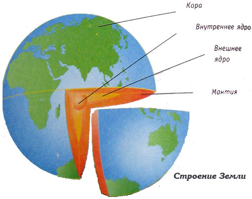 Наша планета состоит из нескольких концентрических слоев. Верхний слой — земная кора — имеет неравномерную толщину. В горных районах материков она достигает 70—90 километров, а в океанических областях заметно сужается до 7—10 километров. Основные породы, из которых состоит земная кора, — это окислы кремния, алюминия, железа, щелочных металлов. Континентальная кора имеет два слоя: верхний, гранитный, и нижний, базальтовьй. В состав континентальной коры входят породы, возраст которых превышает 3 миллиарда лет. Океаническая кора имеет один слой. Состоит он из базальтов — силикатной породы, содержащей кальций, магний, железо, натрий. Возраст океанической коры - 100-150 миллионов лет