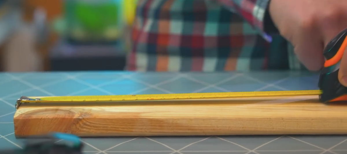 Возьмите узкую доску и отрежьте от неё 15-20 сантиметров длины.