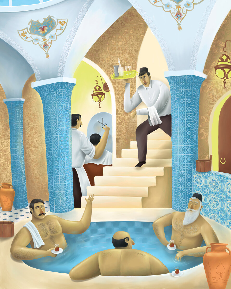 Общественную миссию бань на Востоке переоценить невозможно. Как правило, бакинец ходил в одну и ту же баню на протяжении всей жизни, и о его домочадцах и делах знали и банщики, и терщики, и массажисты.