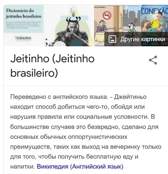Некоторые бразильцы и сами не любят в себе этот жейтиньо бразилейро, презирают, высмеивают, но в действительности многие проявляют его в разных ситуациях. Иногда он может носить позитивный характер, никому не вредит, но даже наоборот - приносит пользу.