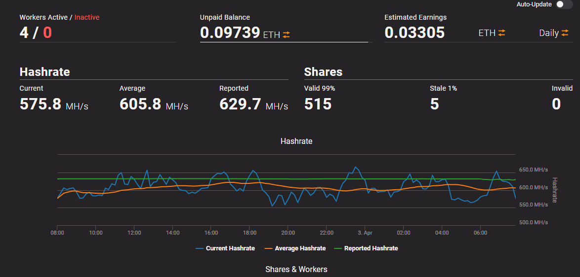 На данный момент имею 630 мегахэш мощности на эфире.