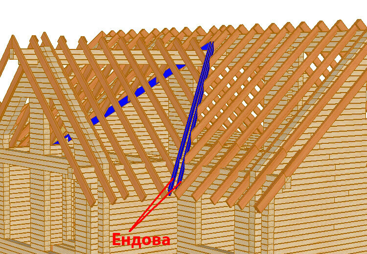 Ендова (разжелобок), при возведение крыши возникают стык двух линий пересечений крыш, не всегда крыша бывает двускатная, в следствии чего образуется внутренний наклонный угол, который во избежание попадания воды под