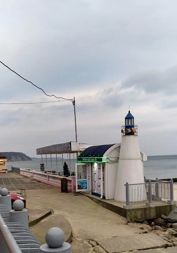 Во время путешествия, смотря по карте где поесть. Увидев кафе с названием "Блинная", очень захотелось блинов. В Светлогорске много кафе и уличной еды. В одном из таких мы перекусили безумно вкусным панини, но был один минус. Заказывали мы в ларьке, а столики находились на улице, а в декабре у моря очень холодно. Гуляя по городу, через несколько часов захотелось есть и посидеть в теплом безветренном месте. Посмотрев карту, все основные заведения находятся в центре города, на улице Ленина. Расстояние здесь настолько небольшое, что идя от центрального парка, мы проскочили свой поворот и ушли дальше. Только когда дошли уже практически до автовокзала поняли что точно прошли. Пришлось возвращаться, хоть это и заняло всего несколько минут. Выбранное нами заведение находится прямо напротив знаменитого здания водонапорной башни. Сейчас здесь располагается один из корпусов санатория. Здание с кафе делится на две части, в одной находится бар, в другой кафе. А посередине видимо общий туалет.