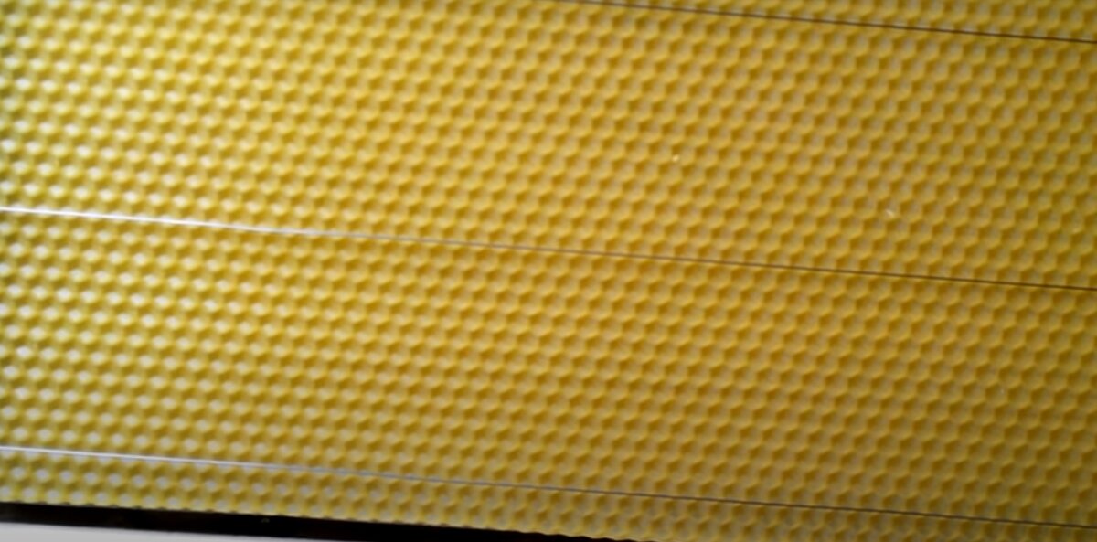 При электронаващивании лист вощины не повреждается, в отличие от прикатки шпорой катка, и пчелы здесь строят такие же ровные ячейки, как и на всем листе.