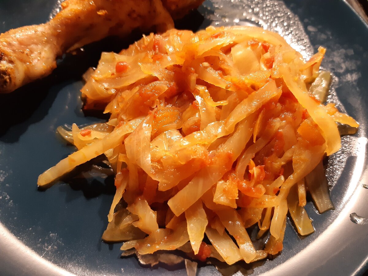 Подавать можно сразу, но лучше дать капусте постоять ещё полчасика под закрытой крышкой.