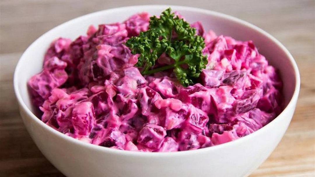 Сваренную свеклу порезать мелкими кубиками, порезать мелко огурцы и чеснок, приправить йогуртом соль по вкусу.