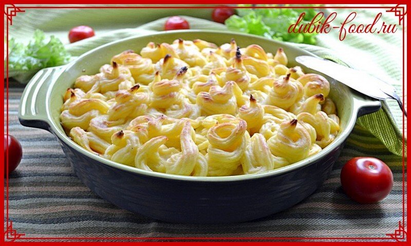 Положить на фарш картофельное пюре как вам нравится ( можно просто разровнять, на вкус это явно не повлияет ).