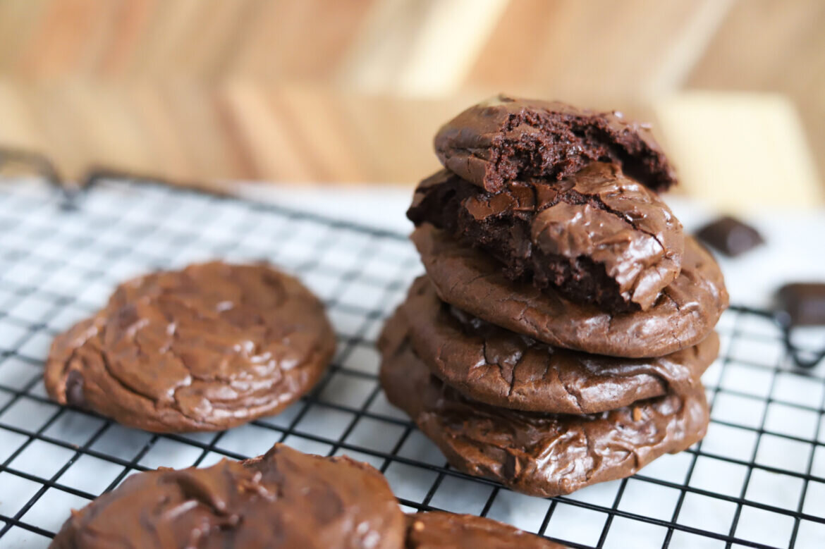 Включая выпечку, приготовление этих сладостей занимает около 25 минут, и награда за эти небольшие усилия более чем достойна. Печенье выходит влажным внутри, интенсивно шоколадным и таким вкусным.