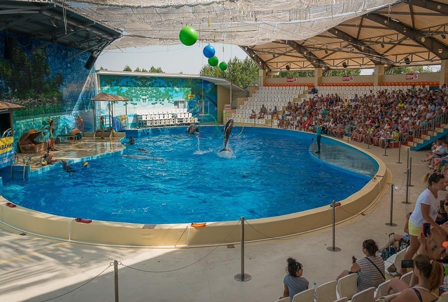 Это развлечение в Анапе примечательно тем, что здесь не просто показывается выступление, а ещё можно сделать фотографии с морскими обитателями и даже поплавать с ними. Вход обойдётся от 1 000 рублей, что достаточно недорого за такие эмоции.