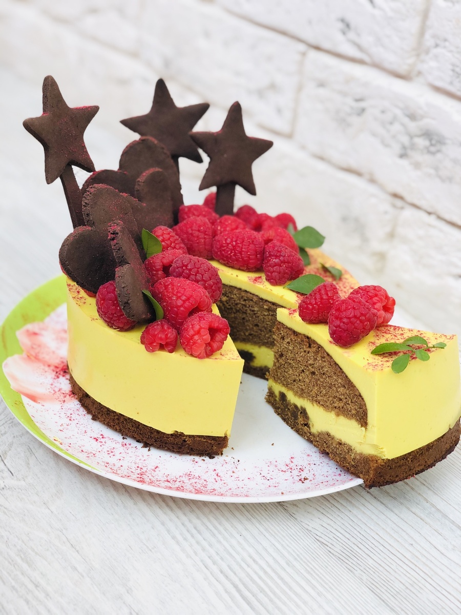 С малиной сочетание идеальное! Поэтому рекомендую именно эту ягоду для украшения.