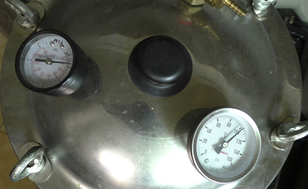 1. Нагрев автоклава 60° C на медленном огне 30-45 мин, до температуры 110° C