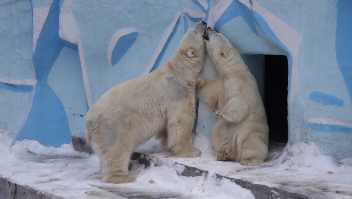 Зимой я обнаружила на Ютьюб несколько каналов, посвященных семье белых медведей в Новосибирском зоопарке. Главная пара - медведь Кай и медведица Герда, и весь март у них была любовь. За ними подглядывают постоянные посетители зоопарка, да так, что и неудобно. Там такие страсти!