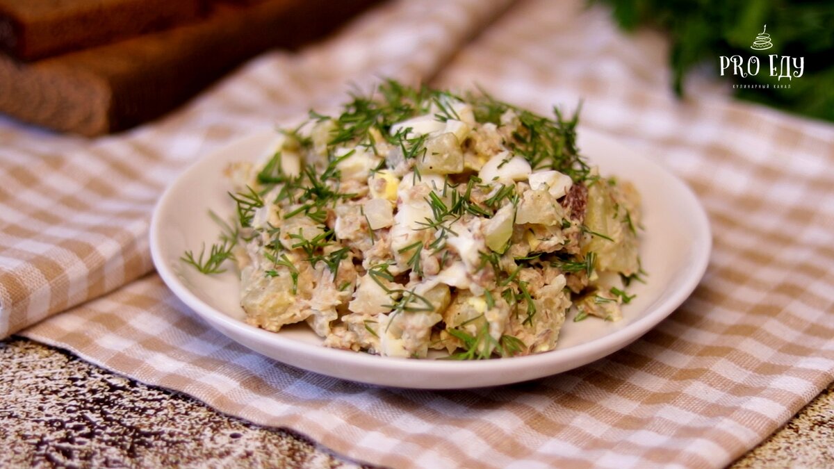 Здравствуйте, уважаемые читатели канала "Pro еду"! Меня зовут Ирина, и я рада приветствовать вас на своём кулинарном канале ) Моё любимое сочетание: просто, быстро, недорого и вкусно. В этом салате всё совпало) Сегодня предлагаю приготовить салат с картошкой. Рецепт этот знаю давно и готовлю довольно часто (потому что очень вкусный). К такому салату даже гарнир не нужен. В который раз убеждаюсь, что чем проще, тем вкуснее! Перемешиваю и салат готов! Насколько просто, настолько и вкусно! Приятного аппетита! *****РЕЦЕПТ***** картофель отварной или запечёный.................2-3 шт. яйца...........................3 шт. лук........................1 шт. рыбные консервы.....1 банка солёные огурцы..........2-3 шт. соль, перец.........по вкусу майонез...............2 ст. л. укроп Спасибо всем, кто поставил лайк. Подписаться на мой канал можно ➡️ ЗДЕСЬ Всегда рада новым друзьям! ♥♥♥