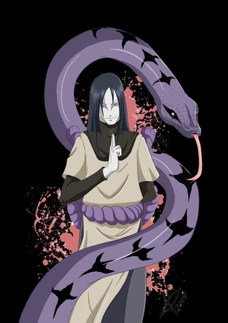 Ученик третьего хокаге и один из трех легендарных саннинов наряду с Джирайей и Цунаде. Он был настоящим гением и из-за своей нездоровой любознательности он переступил через человеческие нормы морали и этики в своих исследованиях, что привело ко многим преступлениям против человечества. Создатель техники Проклятой Печати и других запретных техник.