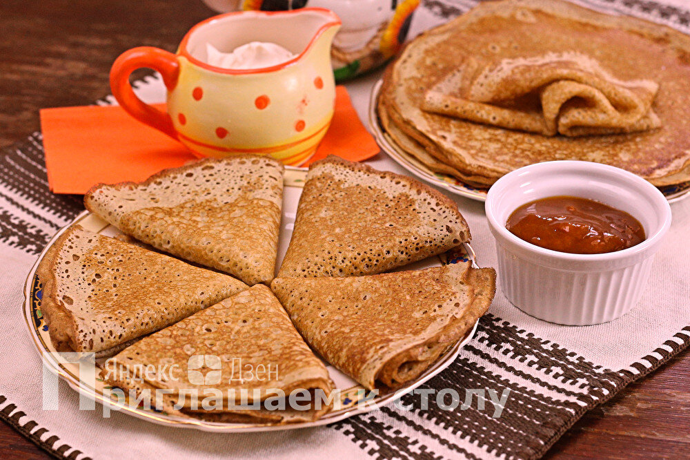 Румяные аппетитные блинчики смазываем сливочным маслом и укладываем на блюдо или большую плоскую тарелку. В готовые блины можно завернуть любые начинки (поджаренный мясной фарш, творог, соленую рыбу) или подавать к столу с медом, вареньем, кленовым сиропом, сгущенным молоком или со сметаной.