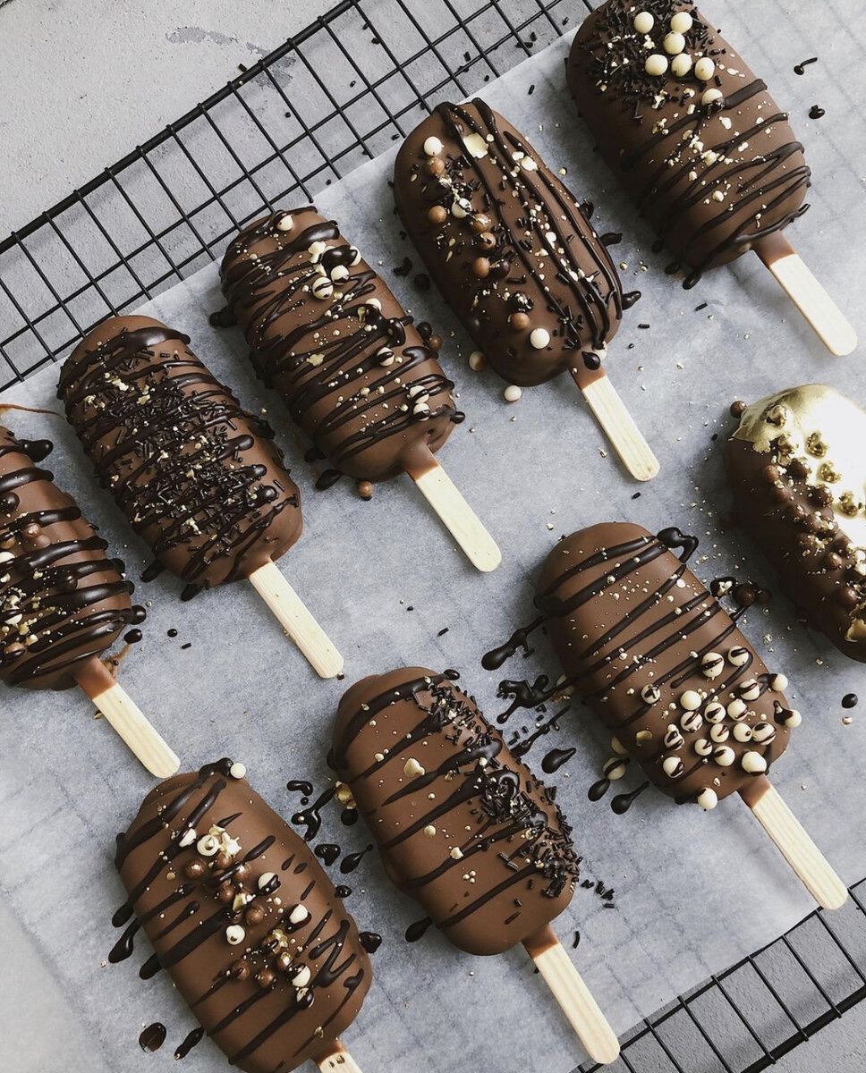 Измельчить бисквит в блендере и добавить крем к крошке. Сформировать эскимо или шарики. Убрать в морозилку на 20-30 минут.