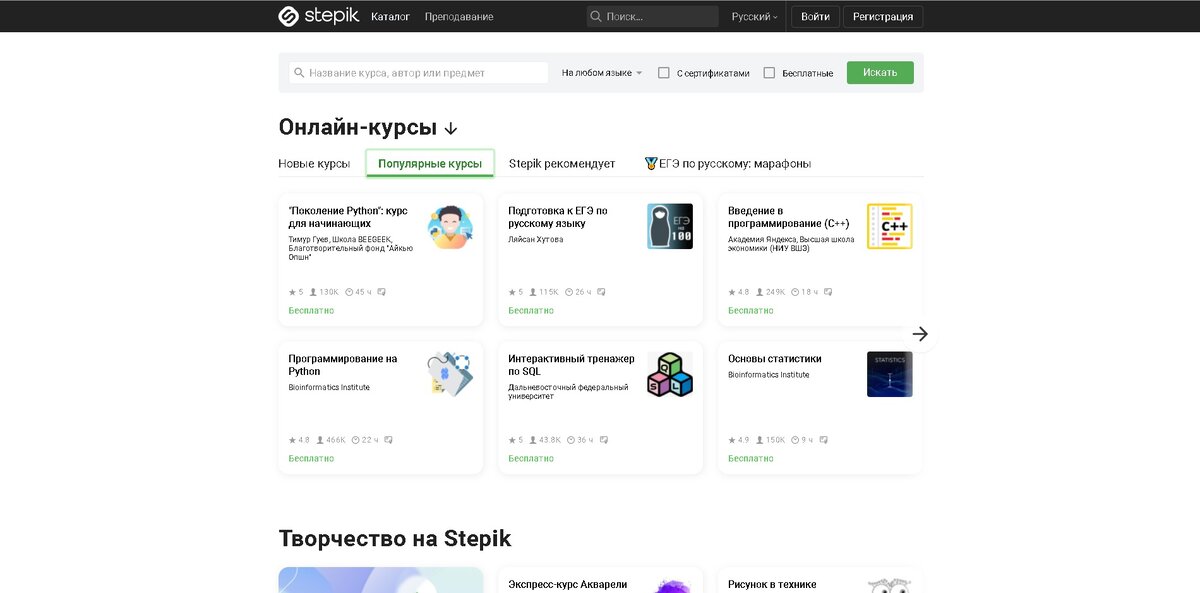 Сегодня мы поговорим о таком ресурсе как Stepik. Он содержит в себе огромную базу курсов для различных it отраслей, а самое главное, что все эти курсы совершенно бесплатные. Вас ожидают обучающие уроки и интересные задания для самостоятельного выполнения, Если же вдруг что-то не получается то всегда можно найти подсказку в форуме решений, который открывается после некоторого количества попыток