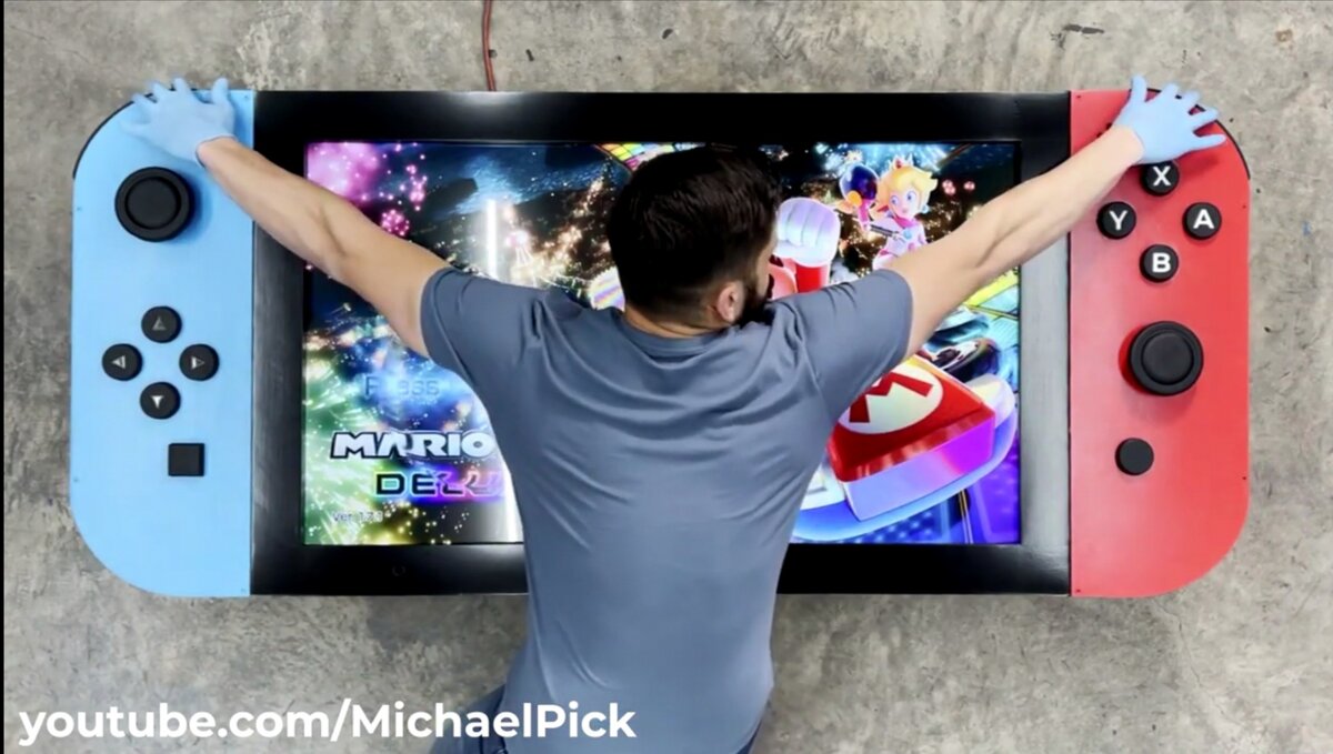 И вот на этот раз энтузиаст на своём канале на YouTube, названном своим именем Michael Pick, собственными руками создал огроменный Nintendo Switch, который к тому же работает, а потом пожертвовал его в