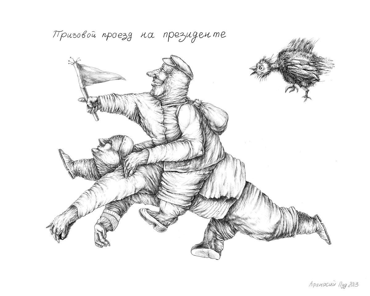 Дорогой мой, золотой победитель! сказал главный поздравляющий Алексею Владимировичу, поздравляю от души! Никаких всепалатных скачек! Сразу! Вот вам главный приз – путевка на еженедельный проезд на президенте! И Алексей, отпустив Федора с благодарностью, купил билет, сел в поезд, а не в самолет, и поехал в столицу. Там его уже ждал президент. Прямо на площади пяти вокзалов он присел, чтобы Алексею Владимировичу было удобнее забираться, положил на плечи золотую президентскую попонку и приглашающе оглянулся – залезай, дорогой представитель народа, дорогой победитель скачек! Алексей Владимирович поерзал и крепко уселся на привычной спине президента, поглядел радостно по сторонам и закричал: нну, пошел! И президент побежал, иногда бодро выкрикивая: и-го-го! и притоптывая ногами в такт гимну, который несся из каждого репродуктора. Они мчались по Садовому кольцу, потом свернули, какими-то улицами выскочили в Чертаново, потом как-то оказались на Рублевском шоссе. Президент ни чуточки не уставал. Он разрумянился и иногда задорно поглядывал на Алексея Владимировича. А Алексей легонько его пришпоривал и иногда давал немного сена. Так они и скакали до 17ч 40мин по средневзвешенному времени. Извините, сказал президент, останавливаясь, у меня встреча с иностранными инвесторами, спасибо за поездку. Они пожали друг другу руки и расстались. Этот день запомнился Алексею Владимировичу на всю жизнь.