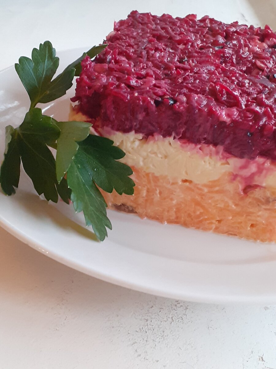 Впервые попробовала этот салат в гостях. Салат очень понравился: понравился вкус, понравился набор ингредиентов и простота приготовления. Я с удовольствием делюсь с вами рецептом и надеюсь, что и вам понравится этот чудесный салат, который украсит не только праздничный стол, но и в будничные дни будет украшением стола. Итак, по порядку.