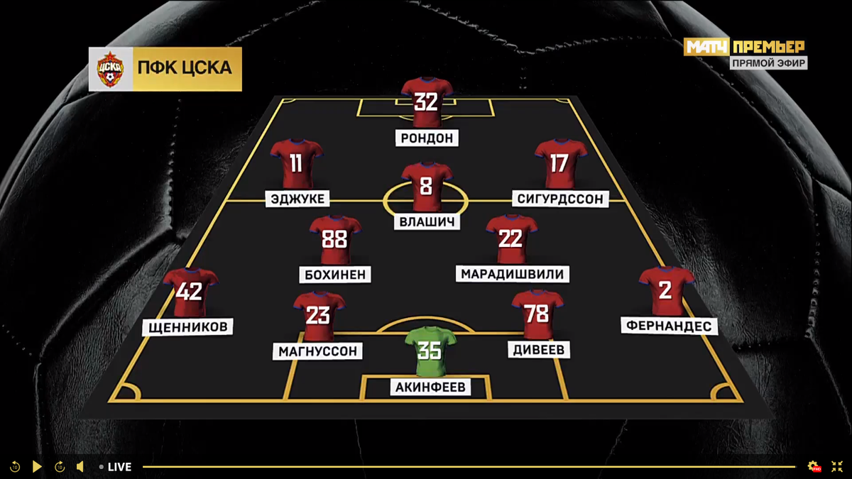 Стартовый состав который выбрал Олич для этой, дебютной для себя игры понятен. Вышли те, с кем он успел уже поработать в паузу на игры сборных. Дивеев и Магнуссон, сейчас объективно сильнейшие центральные защитники. Фернандес необходим вообще любому тренеру. Сюрпризом стало появление Сигурдссона, но тут надо учитывать, что через 4 дня у ЦСКА гораздо более важный матч в 1/4 Кубка России против Арсенала. И вполне возможно, Олич решил кого-то поберечь к этой игре. Хотя, забегая вперед, можно сказать что Сигурдссон сыграл хорошо, напомнив себя прежнего.