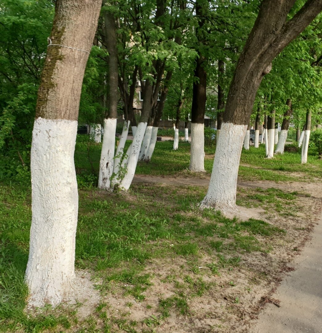 Здравствуйте друзья! Побелка деревьев и бордюров на постсоветском пространстве, это уже устоявшийся ритуал проводимый несколько раз в год.