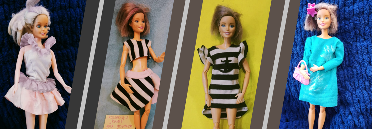 У меня растут две дочки, и шить наряды куклам для нас — привычное дело. Когда я была ребёнком, очень любила играть с куклами Барби, Синди, Вероника. Я им шила наряды из носков, перчаток и всяких старых вещей.