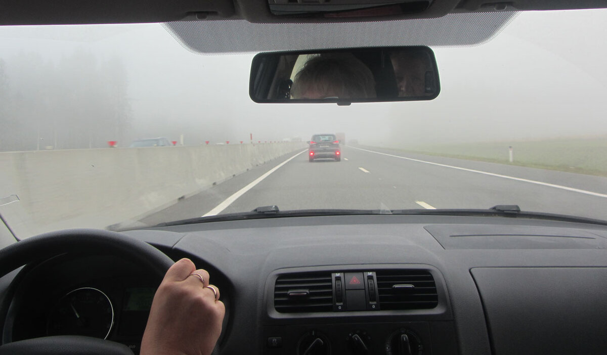 Выехали мы из Питера в 9 утра в субботу. Над Приозерским шоссе стоял туман.