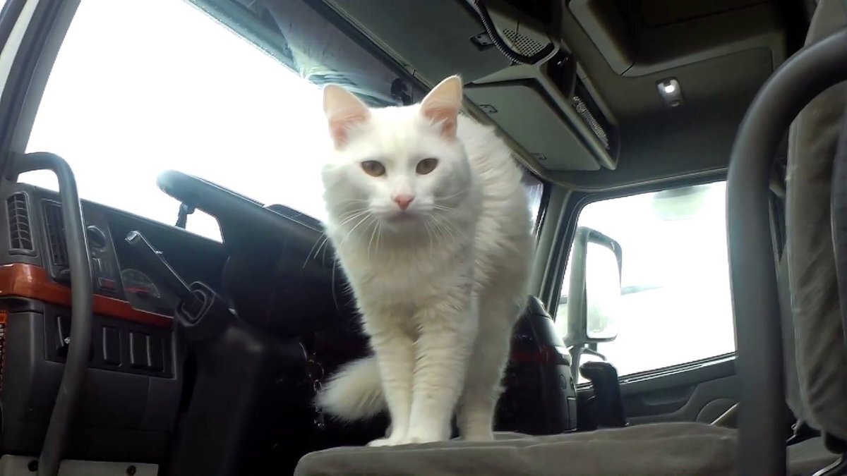Есть на свете дальнобойщики, которые берут в компаньоны домашних животных. Редакция журнала «ТОПС» побеседовала с одним из них. Алексей Довыденков из Смоленска ездил в рейсы со своей кошкой Шурочкой в течение двух лет, пока работал в России. За границей Шура уже не путешествует, живет с родителями дальнобойщика, пока он находится в рейсе, и очень радуется, когда хозяин возвращается.