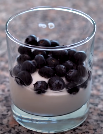 Греческий йогурт полезен для вас, так как у него натуральный состав, он обогащен белком, и вы не чувствуете тяжесть в животе, а маленькая порция голубики заменит вам любую конфету, а также даст вашему организму заряд витаминов.