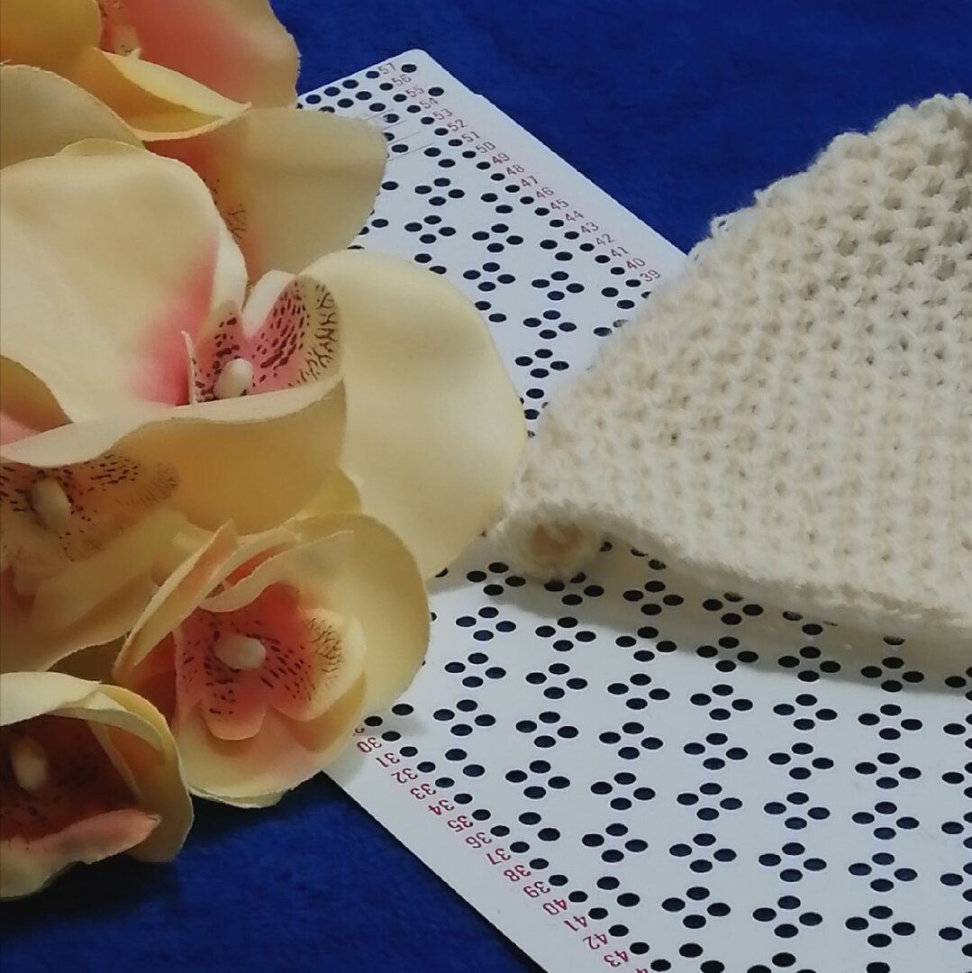Как сейчас модно говорить - 3 D узор по перфокарте. Переплетение пресс. Пряжа 850м/100гр.