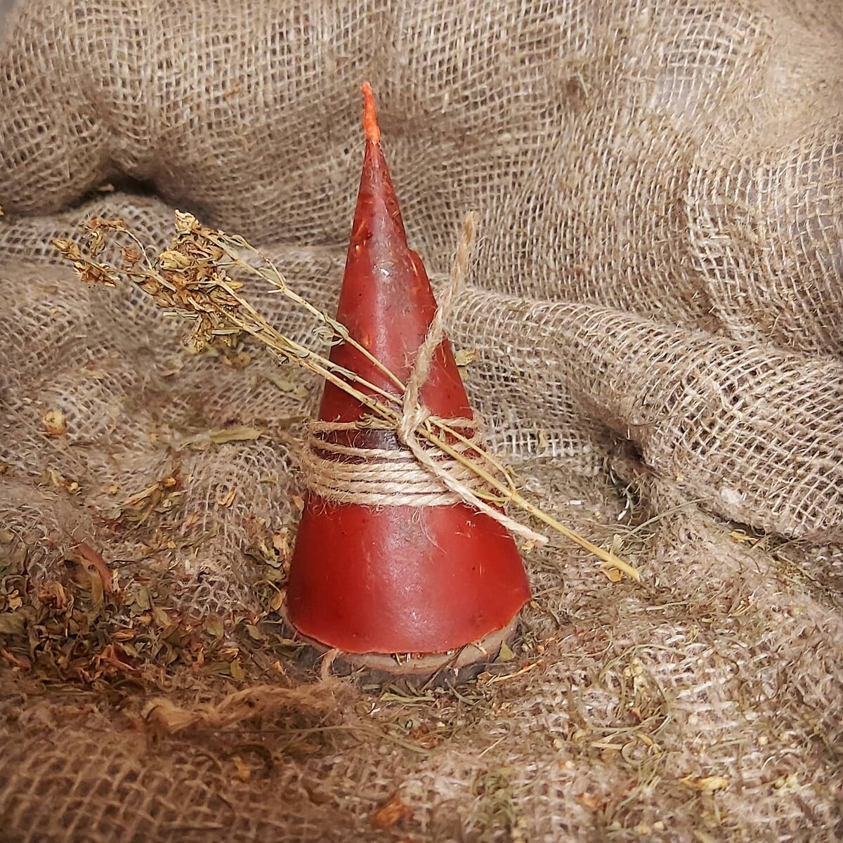 Свеча из красного пчелиного воска, в составе зверобой — магическая трава на силу и энергию солнца. Учти, пожалуйста, что трава использована целиком наряду с фитилем, поэтому