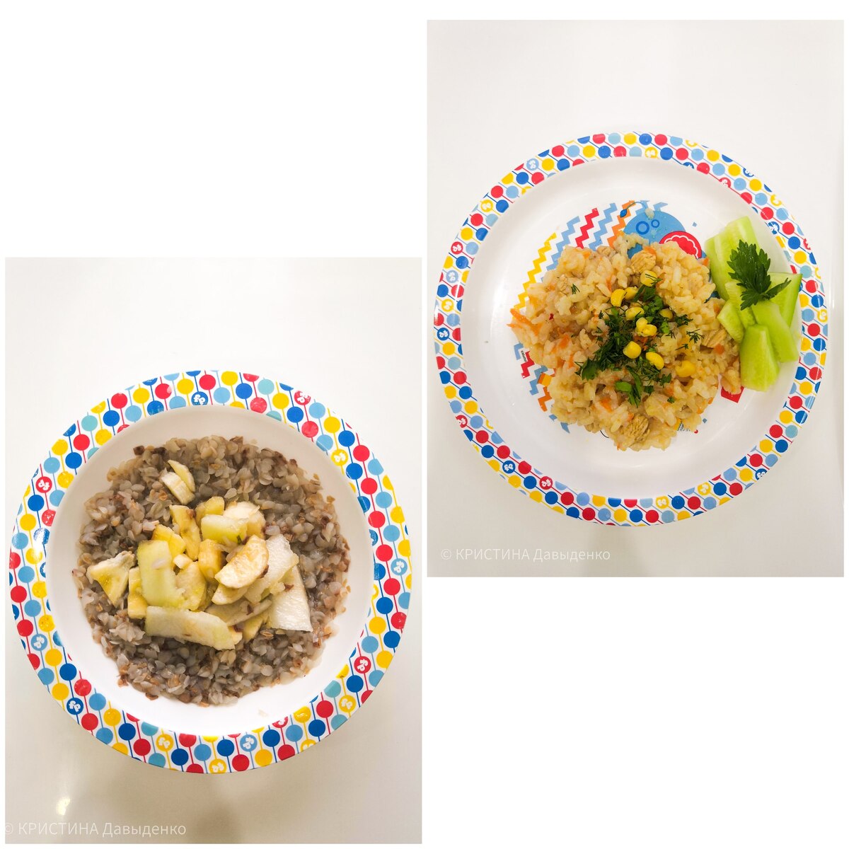 Детское Меню 🥗 🥗 Завтрак - Гречневая каша с кусочками груши и банана. Гречневую крупу сварить на воде. Добавить кусочек сливочного масла, нарезать любимые фрукты малыша. 🥗 Обед - Плов с индейкой. Филе индейки - 200г Морковь-1шт Луковицу-1шт Рис-пол стакана Чеснок-1зубчик Зелень🥬 Приготовление: Нарезать кубиками индейку, немного обжарить на капли масла, далее добавить лук, морковь, чеснок, болгарский перец, немного обжарить, залить водой и потушить 10мин. Добавляем рис заливаем водой. После приготовления плова оставьте немного водички, что бы плов не был сухим. В конце посыпать зелень. Кушайте вкусно. Спасибо что дочитали до конца Подписывайтесь на мой Instagram там статьи выходят каждый день. Если мой рецепт был вам полезен, буду рада вашим💜. #Davydenko_детскоеменю