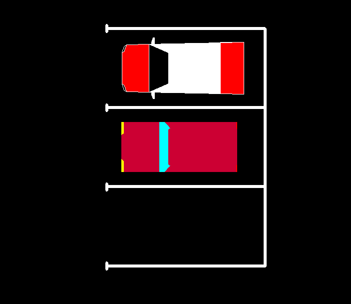 Теперь наша задача - разместить багажник машины ближе к заезду в бокс.