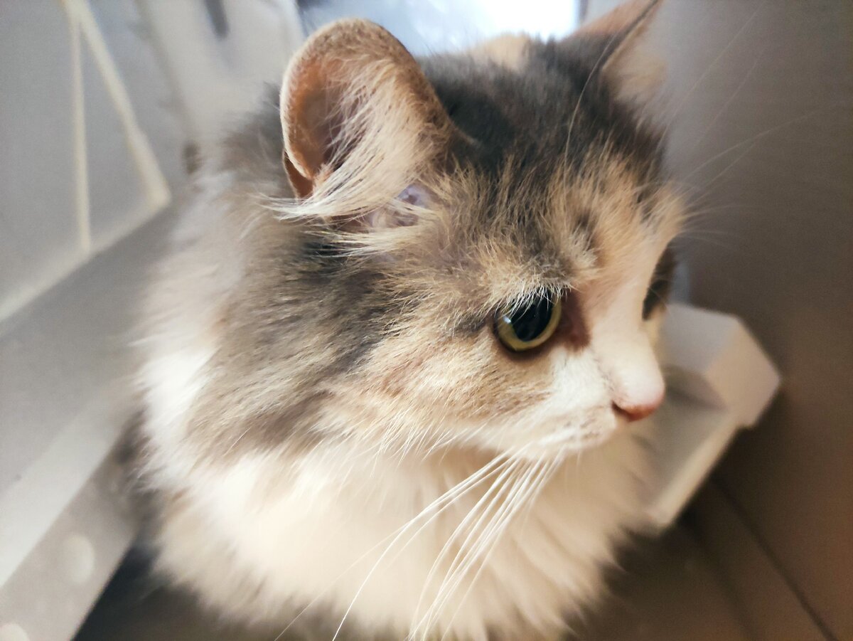 Вы уже обратили внимание, какая она пушистая? Полдня Симка тратит на то, чтобы вылизать шерсть. Линяет, не без этого. На спине сама не достаёт, а с годами обрастает шерстью все сильнее и сильнее. Да она уже на шерстяной комок похожа!