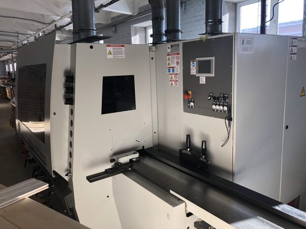 После сушки сырьё оказывается на следующем этапе производства — строжке. Строжку изделия мы производим на немецком оборудовании 4-х стороннем станке от компании Weinig Powermat 700. Это позволяет добиться невероятно качественного изделия, с идеально простроганной плоскостью.
