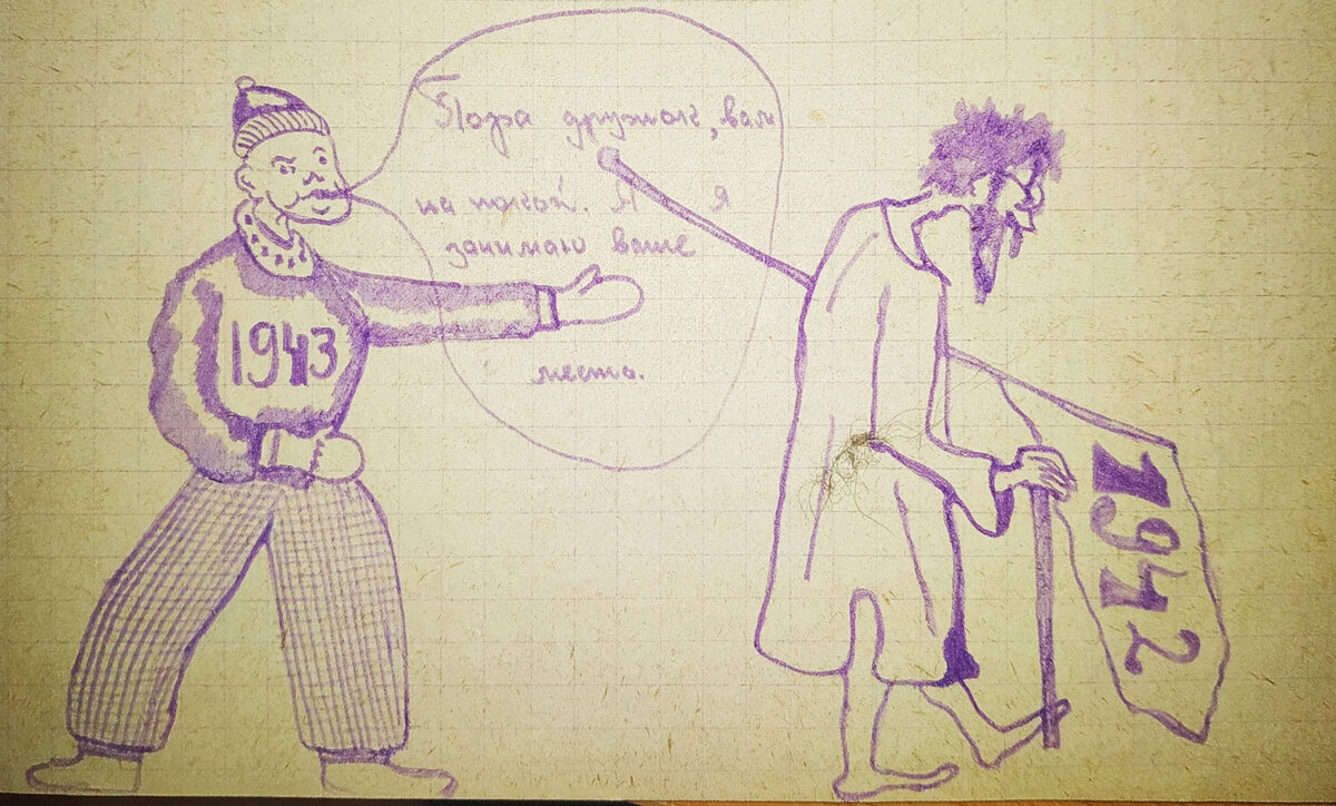 Последний день 1942 года, на пороге стоит 1943 год. Мама разбудила меня полчаса шестого. Оделся, умылся, навернул две тарелки супа. Мама проводила меня на работу и снова легла спать. Володя спит. Из дома вышел без двадцати минут семь. Трамвай ждать не пришлось. На УЗТМ приехал полчаса восьмого. От Сережки мне осталось два казенника: 4456-1; 4500-2. С 14 мая по 5 декабря 1942 года я сделал 738 казенников, а с 6 декабря по 31 декабря 133 казенника. А всего я сделал 871 казенник. К двенадцати часам я закончил работу, а к трем часам станочники завершили годовую программу. Сегодня работал последний день на этом месте. А что буду делать дальше, не известно. Одно из двух армия или Асбест. В столовую ходил полчаса третьего. Съел два обеда, суп лапшу и кашу ячневую с маслом. Домой пошел в четыре двадцать Трамвай ждать не пришлось. Дома был в начале шестого. Мама с Володей уже покушали. Я навернул две тарелки супа. Мама ходила в хлебный магазин, прикрепляла карточки. Они с Володей теперь сидят на 400 граммах. В шесть часов пошли в кино. Смотрели американский фильм "Три мушкетера". Мировой фильм! После кино я пошел на площадь 1905 года, там сегодня новогоднее гуляние. Народу много, военных еще больше. Елка, оркестр и фейерверки. Народу на улицах много, чувствуется оживление. Улицы освещены, фонари все горят, а то с самого начала войны их не зажигали. Сегодня в доме электричество не отключали, весь день и весь вечер был свет. В десять часов встретили Новый год, правда хуже, чем сорок второй, кипяток, конфетка и пряник. Спать легли в начале двенадцатого. Долго не спал, читал, но когда наступил Новый год, я уснул. До свидания, старый год, здравствуй, новый 1943. Что ждет нас в этом году...