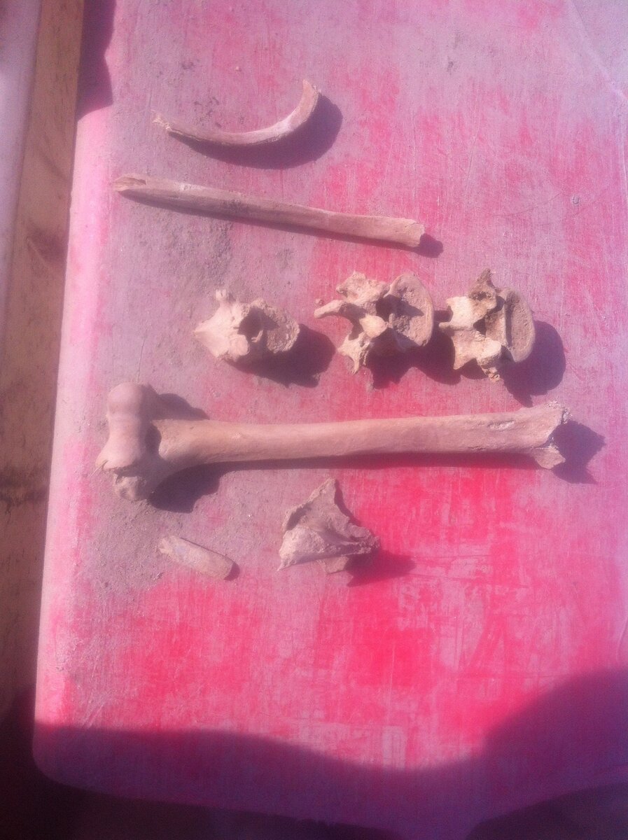 Все кости которые я находил,просто закапывал и читал молитву отче наш. Я не знаю что в таким случаях делать,но поступил так как посчитал будет нужным. Потом отряд поисковиков мне встретился,они сказали что все правильно,если нет опознавательных знаков,то определить уже ничего не получится. Я отдал им алюминиевую ложку с инициалами "Егоров Е.Г." надеюсь хоть кто-то будет опознан.