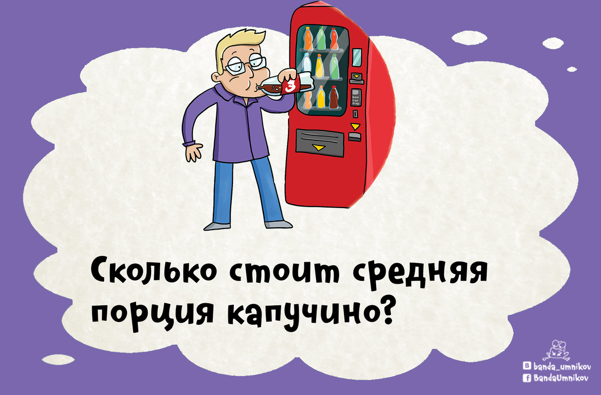 Однажды программисту дали задание: запрограммировать кофейный автомат, чтобы он выдавал порцию капучино среднего размера. Капучино среднего размера — 150 мл. После получения задания программист понял, что не узнал, какую цену нужно установить.