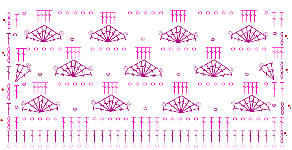 Раппорт узора состоит из четырех рядов: 3, 4, 5 и 6 (Схема 7).