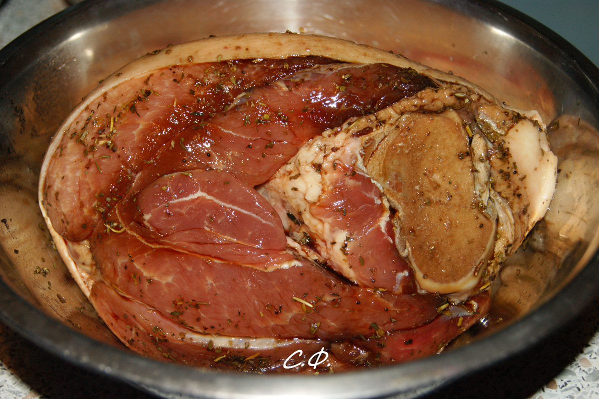 Рульку необходимо помыть под проточной водой, шкуру я немного зачищаю, чтобы она была чистой. Натираю со всех сторон солью, перцем, специями и ставлю в холодильник мариноваться на несколько часов (2-3 часов хватит).
