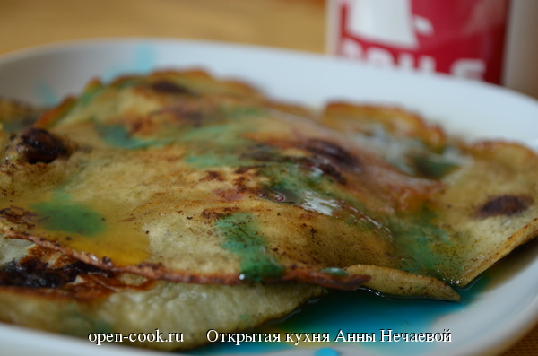 Мы поливали блины кленовым сиропом и блю кюрасао