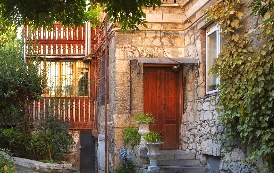 Итак, приступаем к поиску жилья. Новомодные эллинги на набережной я сразу отмела, они везде одинаковые и никакой особой атмосферой там и не пахнет. Квартиры мы не рассматривали никогда. Нужно было что-нибудь особенное. А все особенное в Ялте либо давно уже снесли, либо оно стоили столько, что семье с тремя детьми( замечу, любящей комфорт семье) было дорого. Стала шерстить интернет. Ну и, как известно, кто ищет тот всегда найдет.